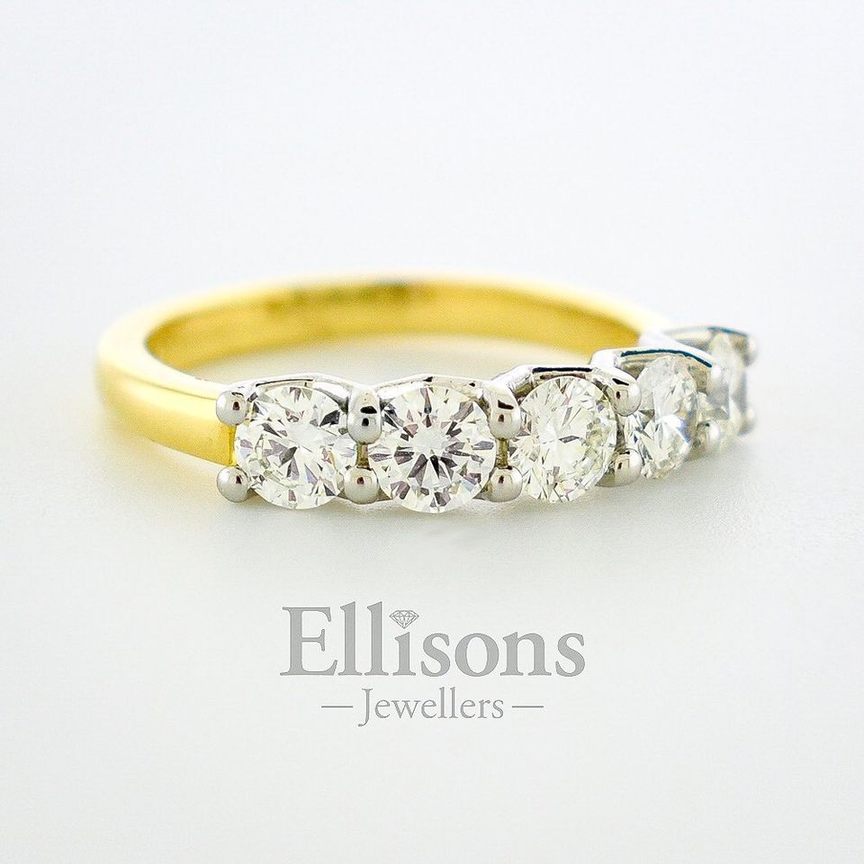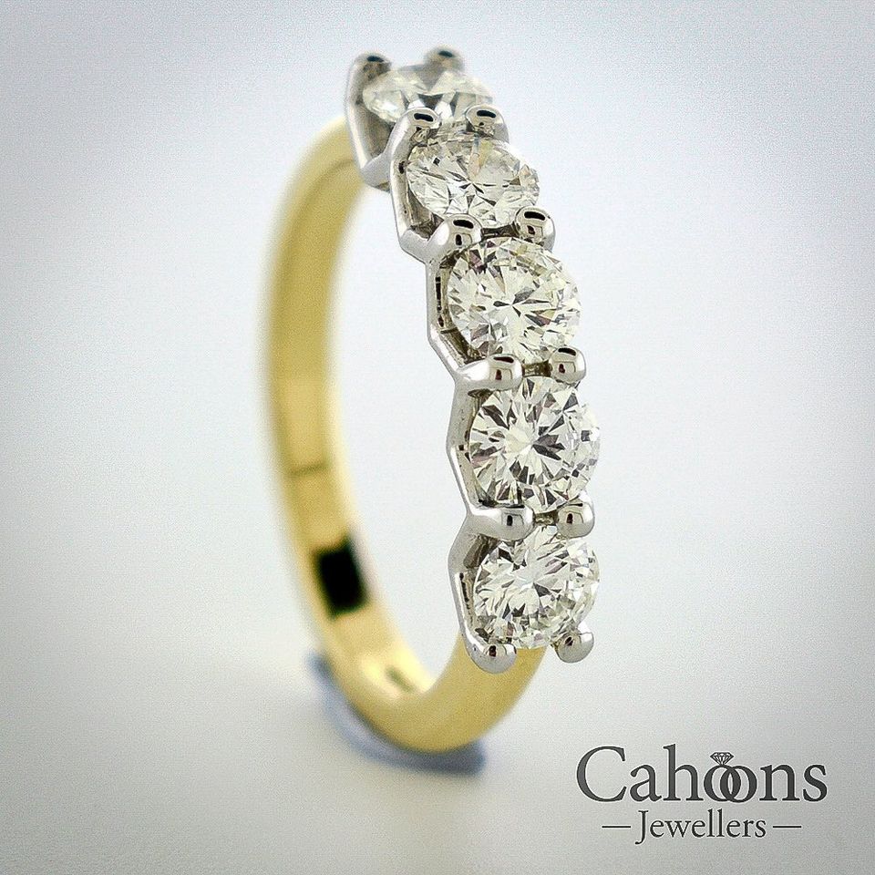 Made with a Platinum setting on an 18ct Yellow Gold band. Available in 4,5,7 and 9 stone versions, encompassing a range of diamond carat weights.