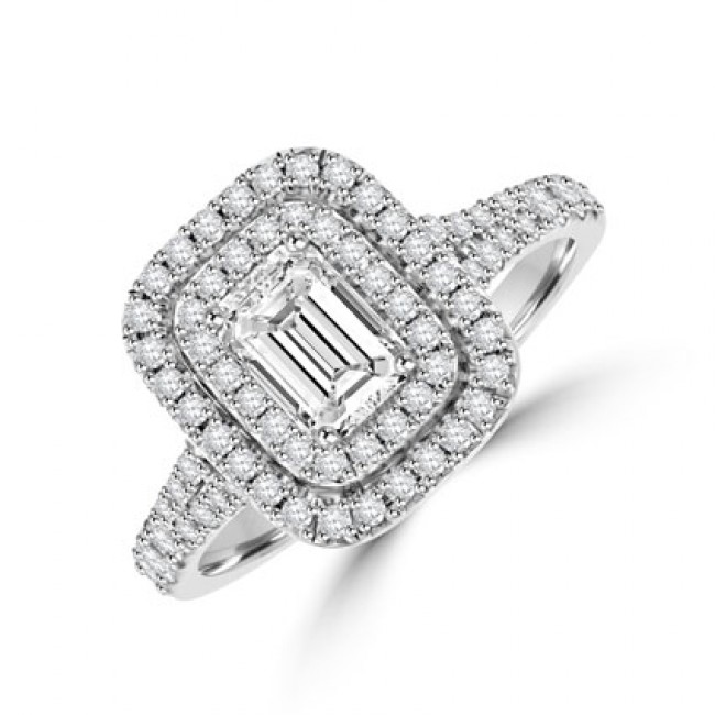 • Platinum Emerald cut Diamond Double Halo Ring