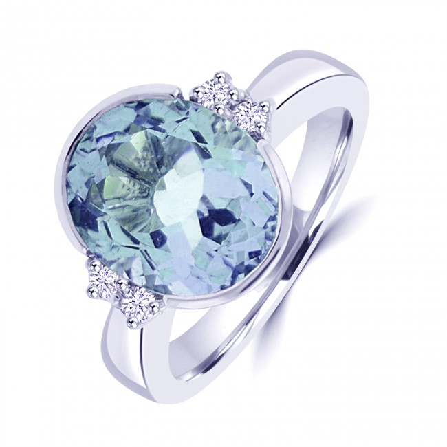 • 18ct White Gold Aquamarine Rubover and Diamond Ring