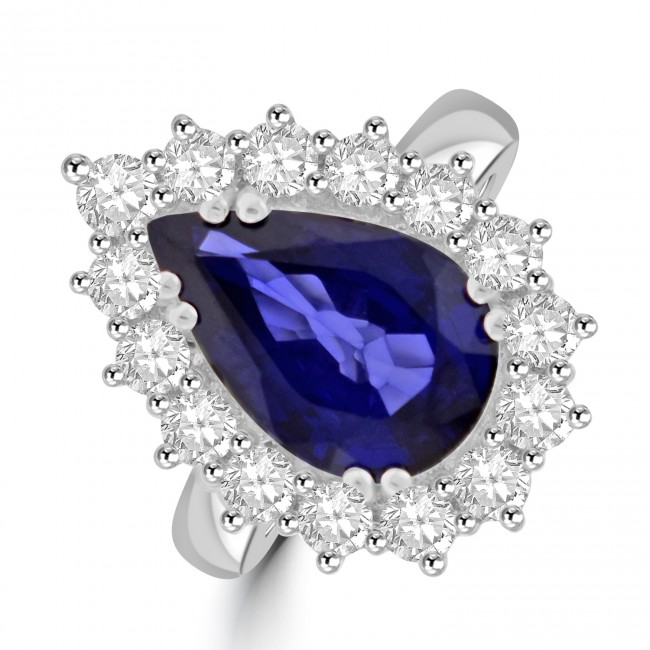 Platinum Sapphire and Diamond Pear cluster ring