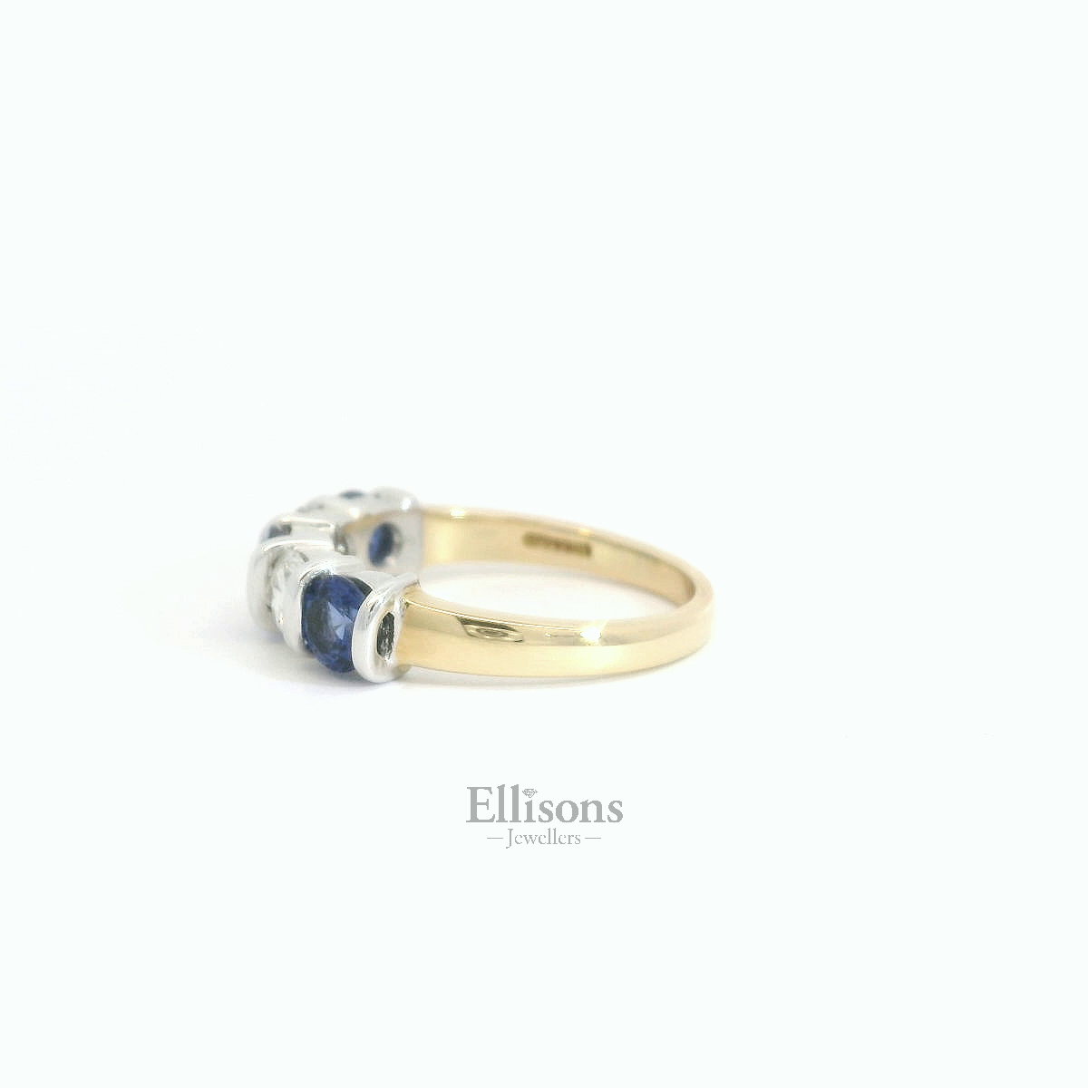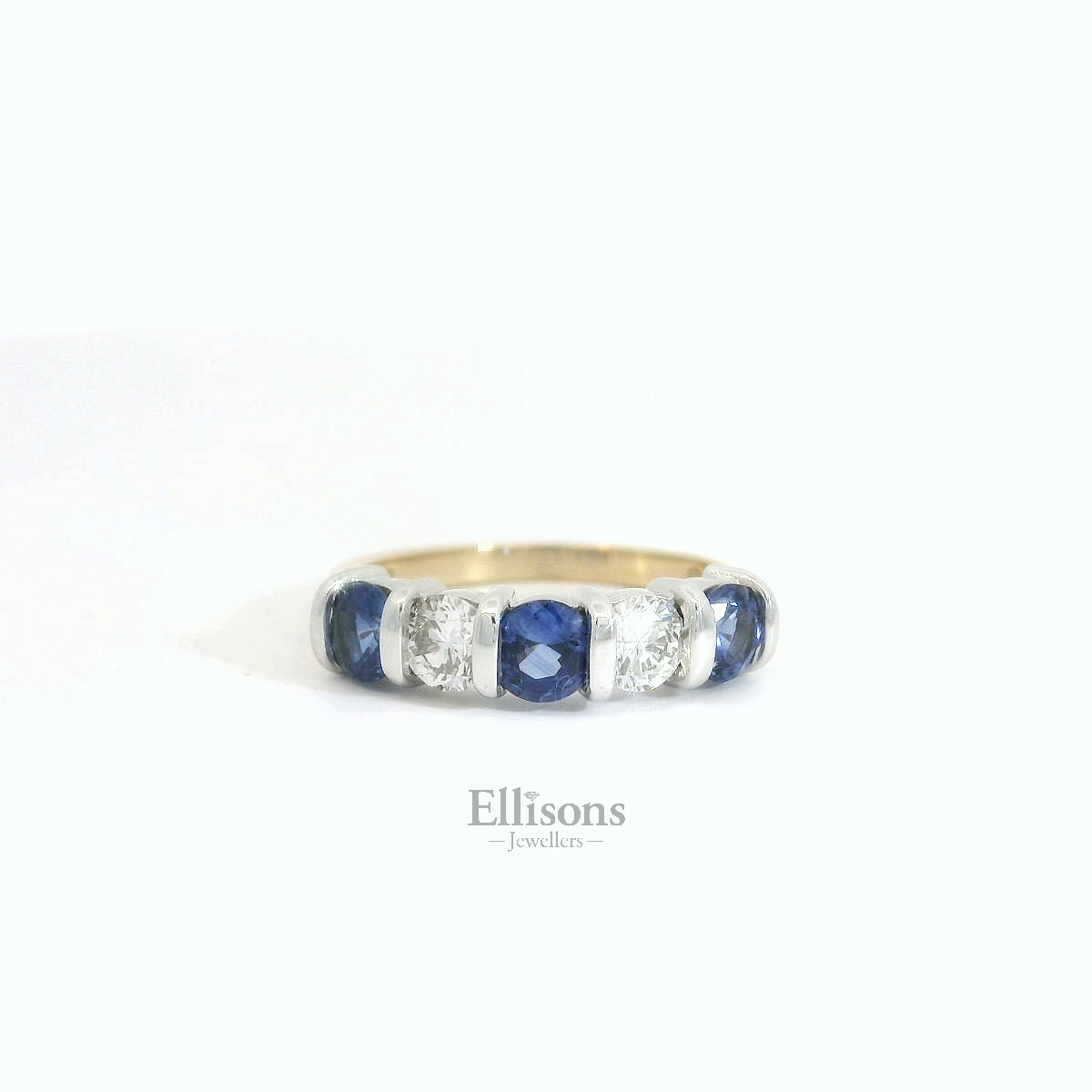 18ct Gold Five stone Sapphire and Diamond Bar set Eternity ring