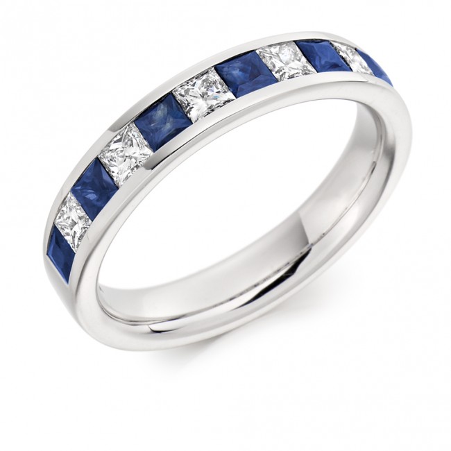 Platinum Sapphire and Diamond Princess cut Eternity ring