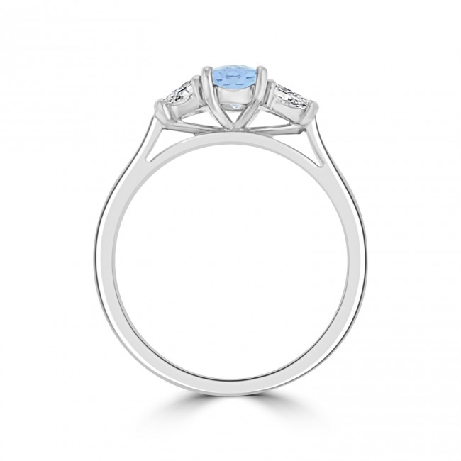 Platinum Three-stone Oval Aquamarine and Pear Diamond Ring