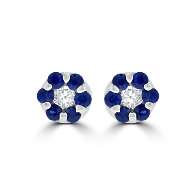 • 9ct White Gold Sapphire & Diamond Daisy Cluster Stud Earrings