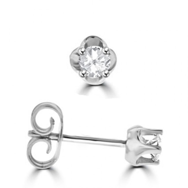 Two Brilliant cut diamonds are set within an elegantly styled 4-claw mount with loopy setting and stem backs.