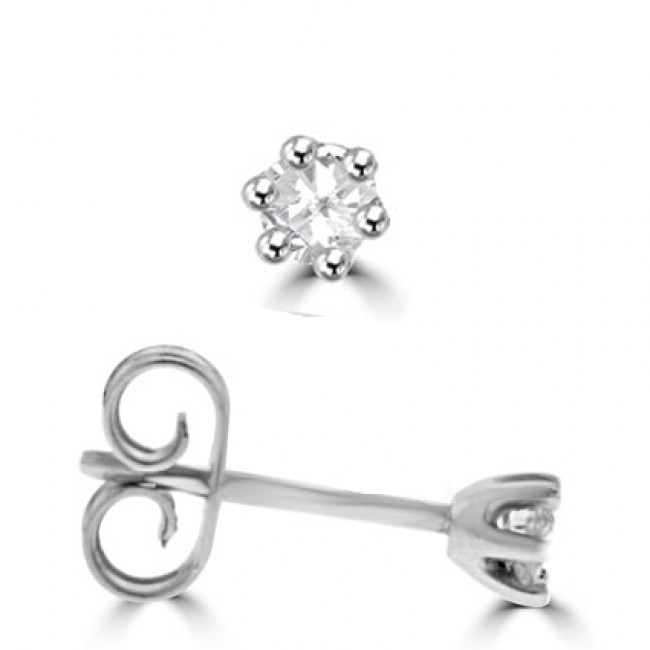 Two dazzling brilliant cut diamonds are set within silky white gold 6-claw earrings.
