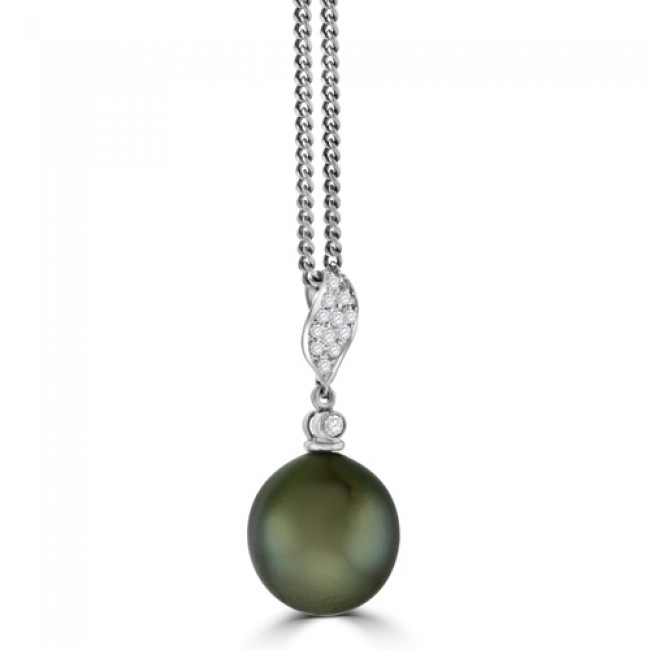 18ct White Gold Tahitian Pearl & Diamond Pendant Chain