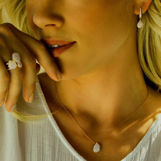 18ct Gold Pave Diamond Pear Funghetti Pendant by Hulchi Belluni