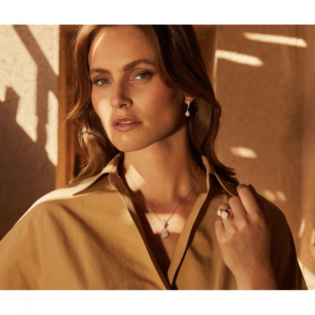 Relatively understated in design, yet beautifully made, the Funghetti range features rounded, convex surfaces of pave set white diamond. The two pear shapes in this pendant are bordered by a plain edge of warm and majestic, 18ct yellow gold. The smaller, top section is subtely fixed within the 18" belcher chain.