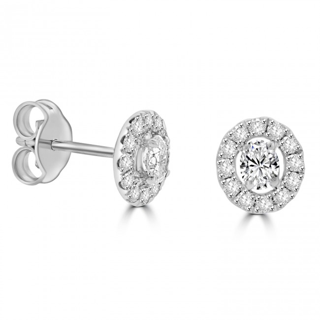 • 18ct White Gold Oval Diamond Halo stud earrings