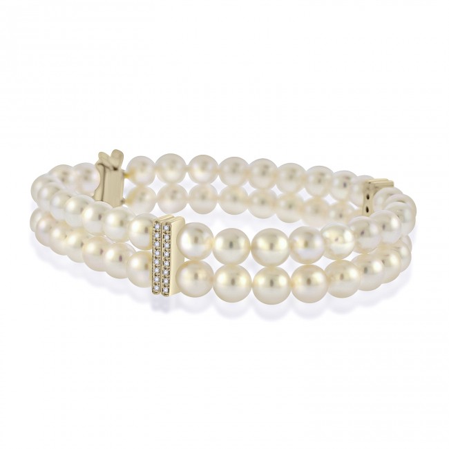 • 18ct Gold and Diamond Akoya Pearl Double row bracelet
