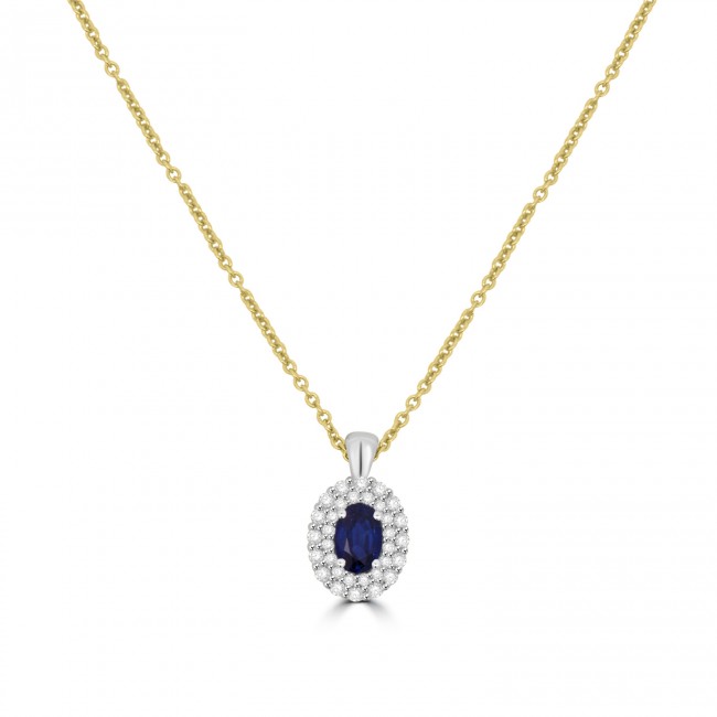• 18ct Gold Sapphire and Diamond Double Halo pendant chain