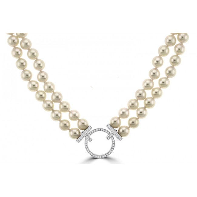 • Akoya Cultured Pear Double Row Necklet with Diamond Clasp