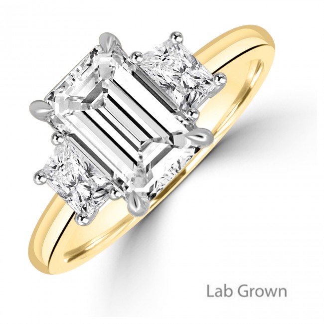 18ct Gold Platinum Emerald cut and Trapezium Lab Grown Diamond