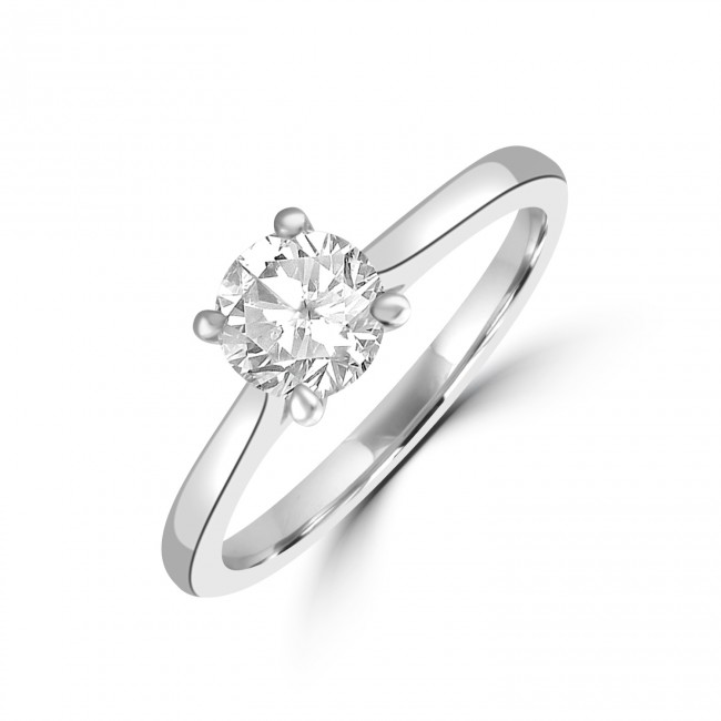 The "colourless" white and vibrant Brilliant cut dazzles with a refined quality. Certified by GIA (D colour, VS2 clarity, Excellent Cut, Excellent Polish, Excellent Symmetry, Fluorescence Medium). The understated Platinum mount features a fine, tapering band and underwired, wedding-ring friendly mount.