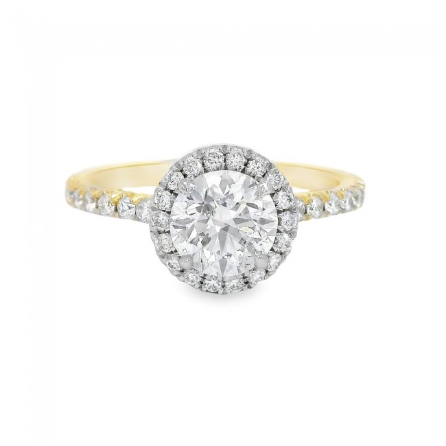 18ct Gold and Platinum Solitaire DSi2 Diamond Oyster Halo ring