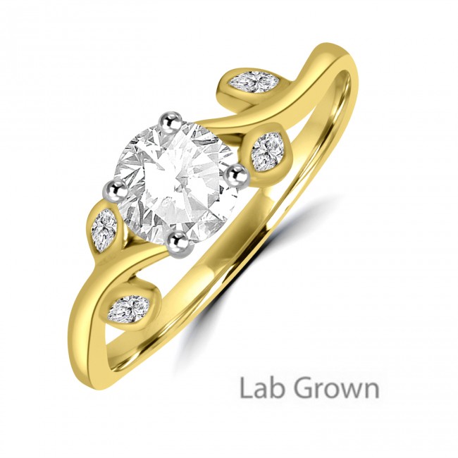 18ct Gold Lab Grown Diamond Solitaire Leaf ring