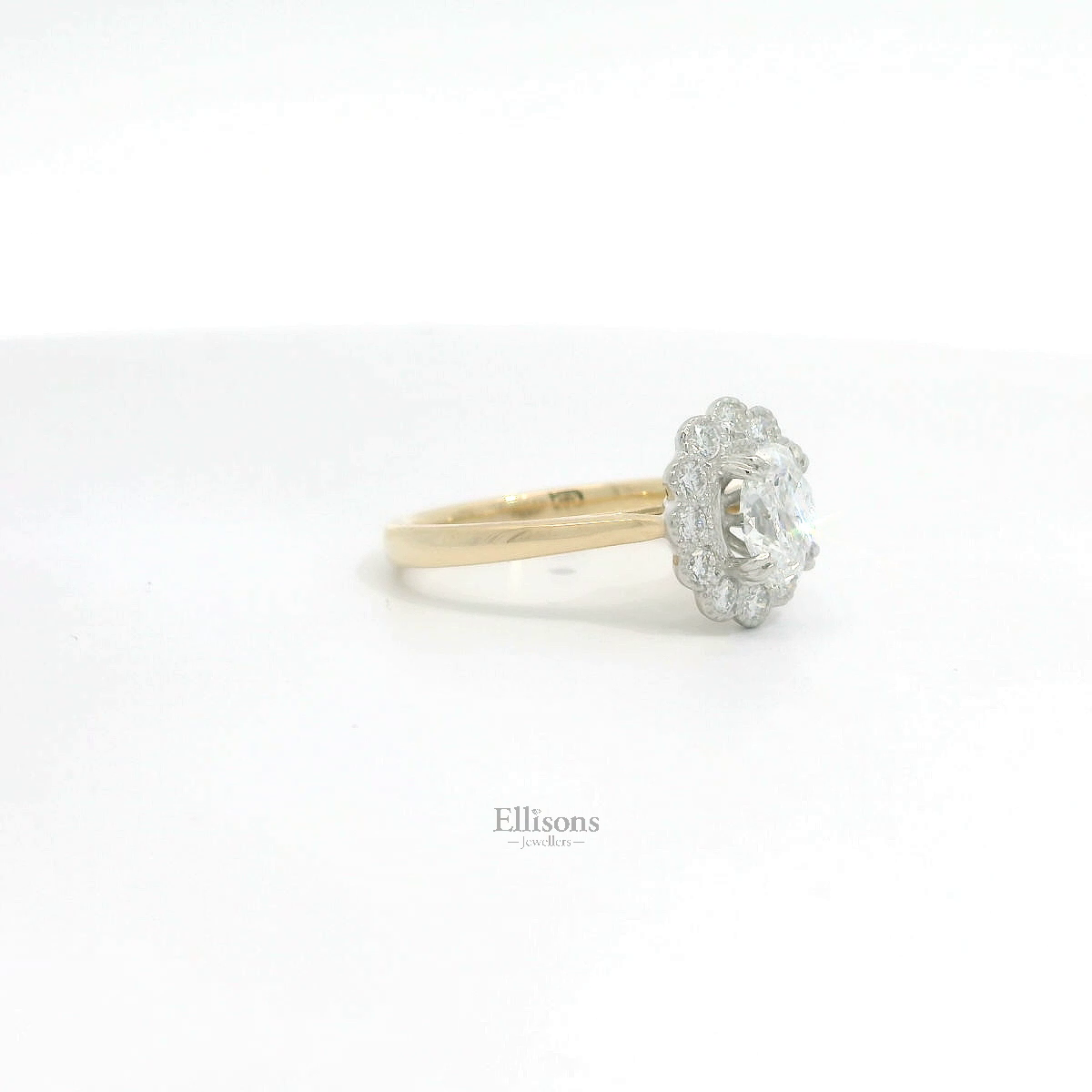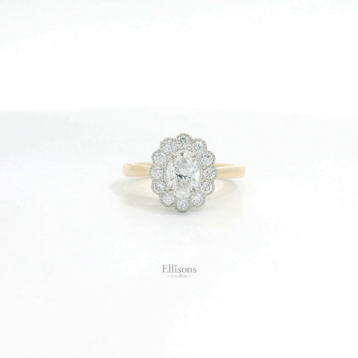 18ct Gold Platinum Oval DVS2 Diamond Cluster ring