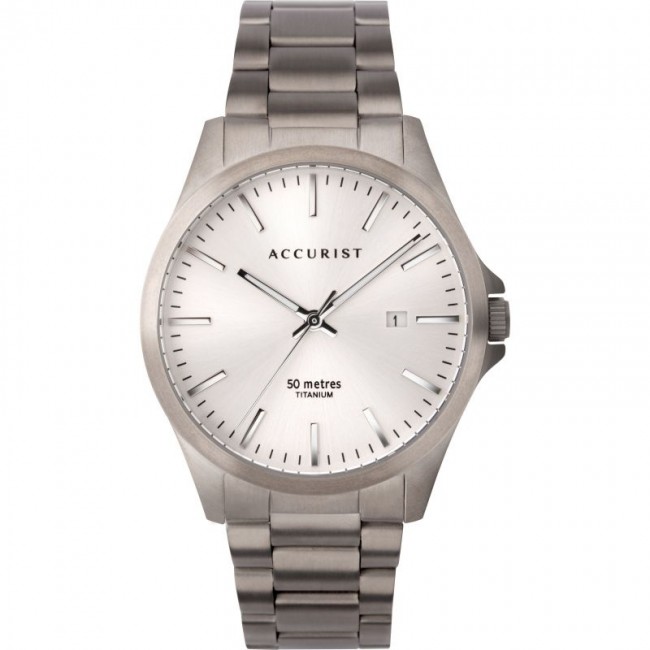 Made in Titanium, this bracelet watch features a silver dial with date function. 7308