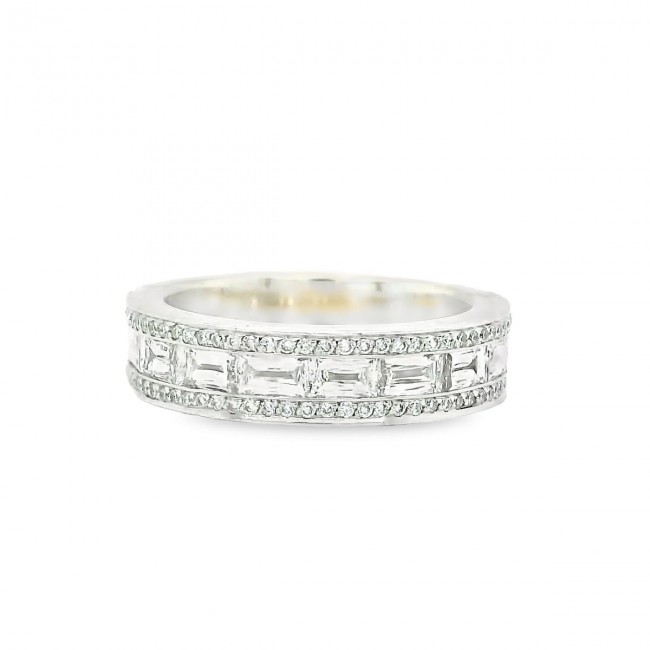 18ct White Gold Three-row Baguette Broad band Eternity ring