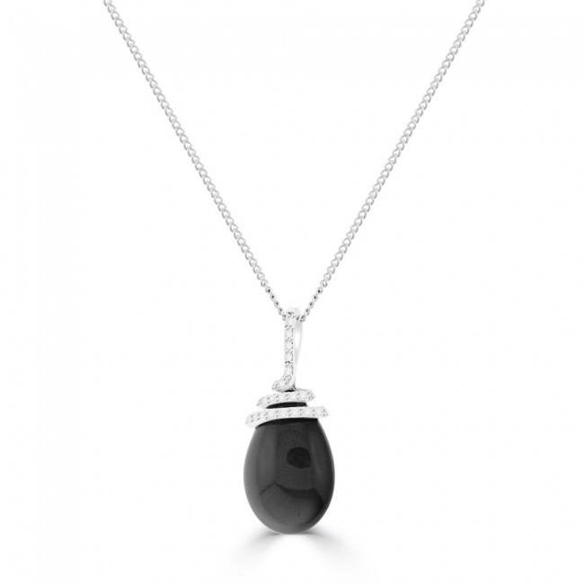 This beautifully uniform Moonstone is pear shaped with a smooth, polished surface. The mysterious gemstone plays on light and radiates luxurious grey tones of adularescence. Attached to the diamond set pendant bale by a coil or spiral, illuminated by an array of white diamond. Sale price relates to Pendant only. Chain sold separately. For reference, flat curb chain shown is 16" in 9ct White Gold and sells for £90 approx Code: 5507550.