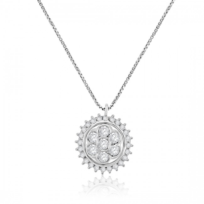 18ct White Gold Daisy Cluster Diamond Pendant Chain