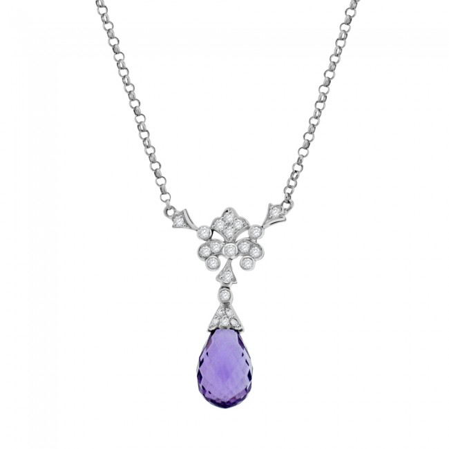 18ct White Gold Amethyst Dropper Diamond Pendant Chain