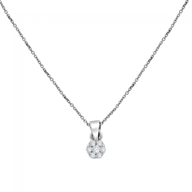 • 9ct White Gold Daisy Cluster Diamond Pendant Chain