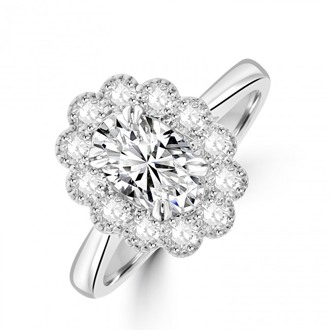 Platinum Oval E SI1 Diamond Daisy Cluster Ring Key Features