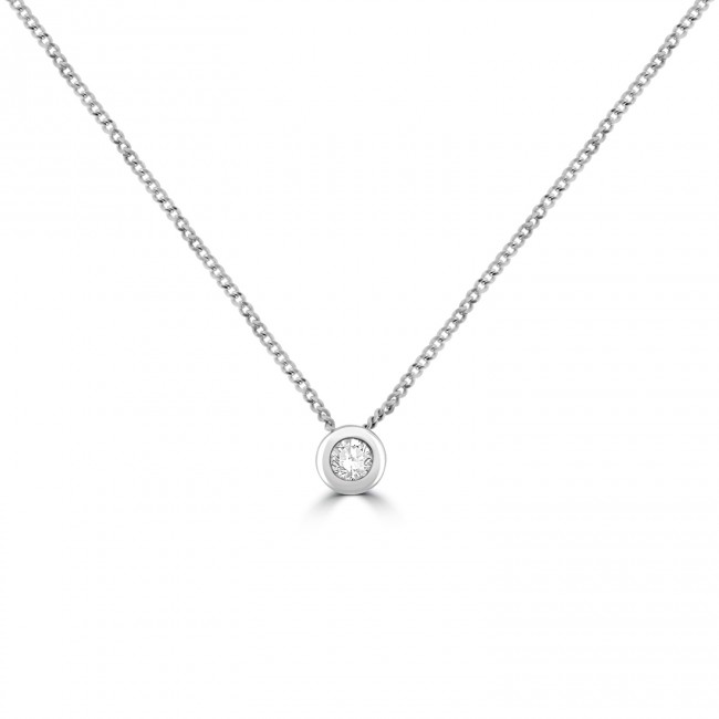 • 9ct White Gold Solitaire Diamond Rubover pendant chain