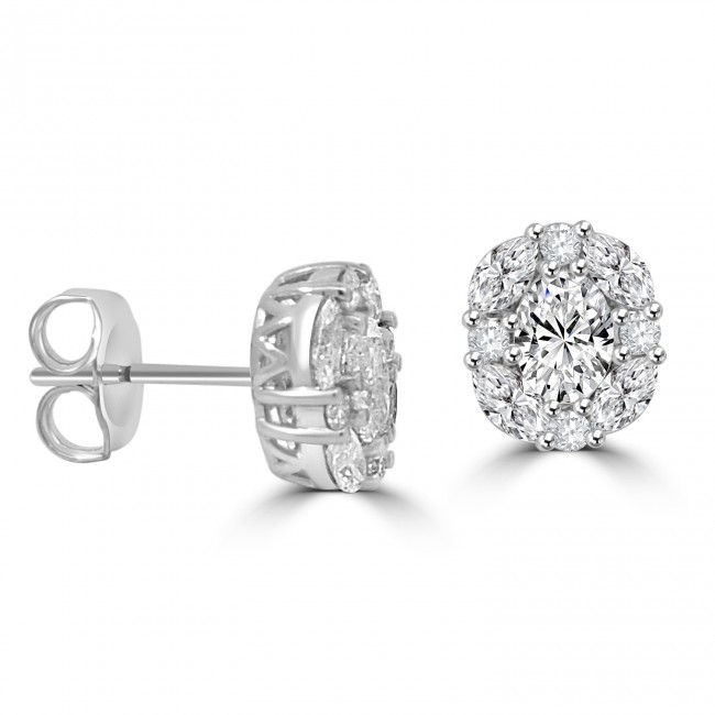 14ct White Gold 1.00ct Diamond Oval Cluster stud earrings