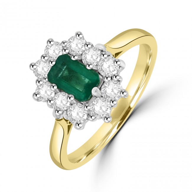 • 18ct Gold Emerald and Diamond octagonal cluster ring