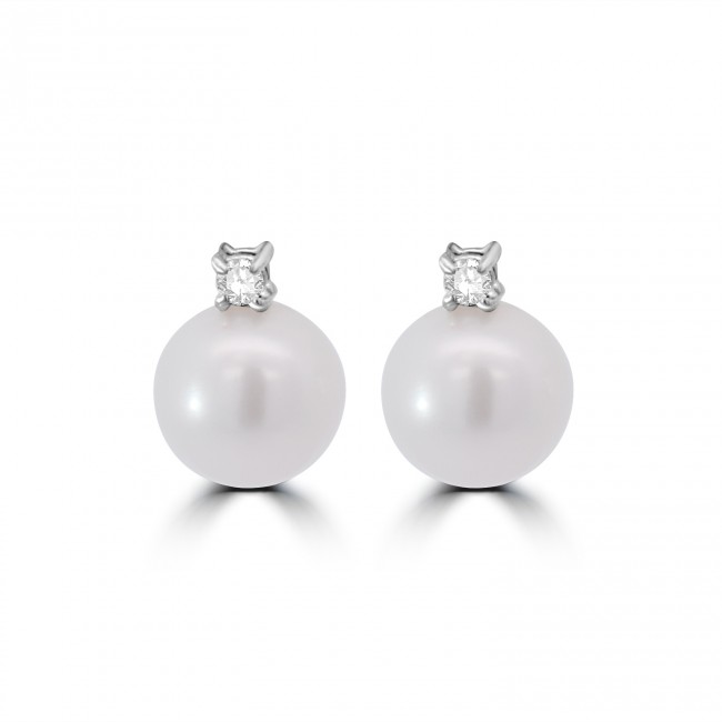 18ct White Gold Diamond and Freshwater Pearl stud earrings