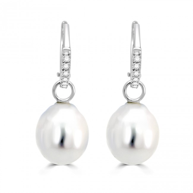 18ct White Gold Diamond Hoop Pearl drops earrings