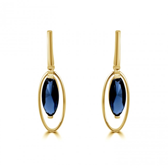 9ct Gold London Blue Topaz Long Oval Drop earrings