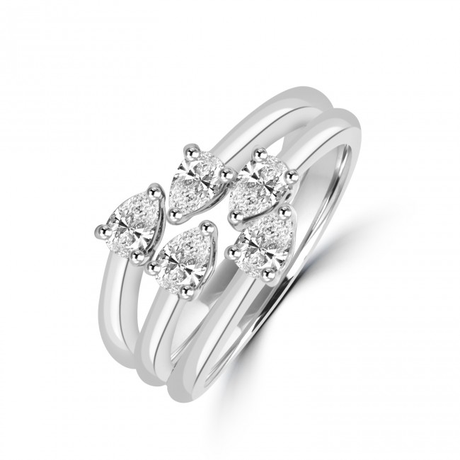 Impressive in both its striking design and expert craftsmanship. Made in luxurious platinum and featuring a 3 x 2 strand wraparound effect, each strand ending with the 'point' of a single, pear cut Diamond. Its low profile makes this a versatile ring , sure to attract attention for all the right reasons!