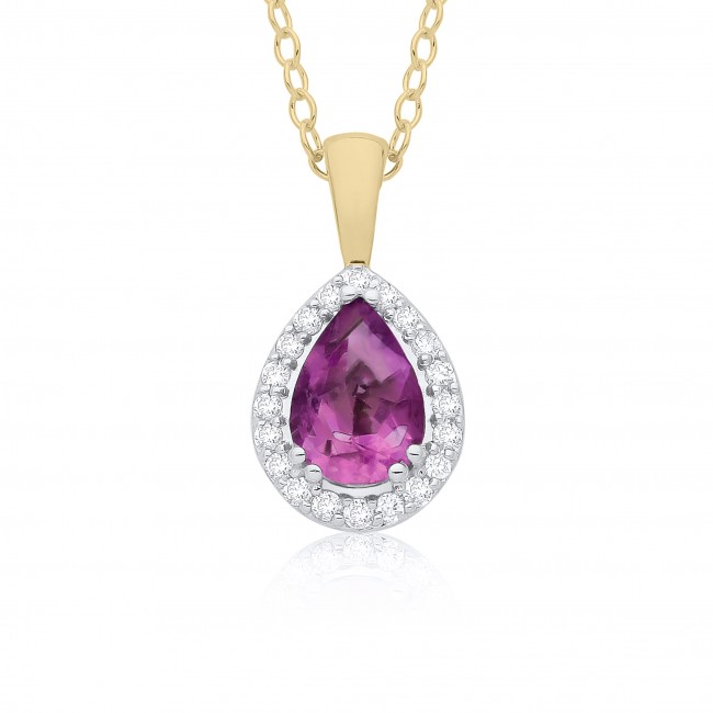 • 9ct Gold Purple Garnet Pear Diamond Halo pendant