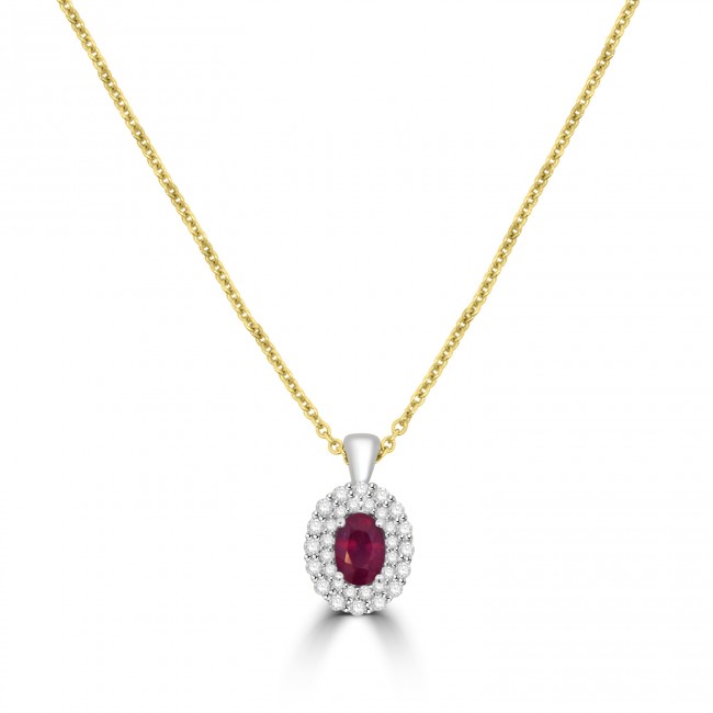 • 18ct Gold Ruby and Diamond Double Halo pendant chain