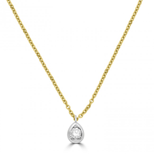 • 18ct Gold Solitaire Illusion Pear Diamond pendant chain