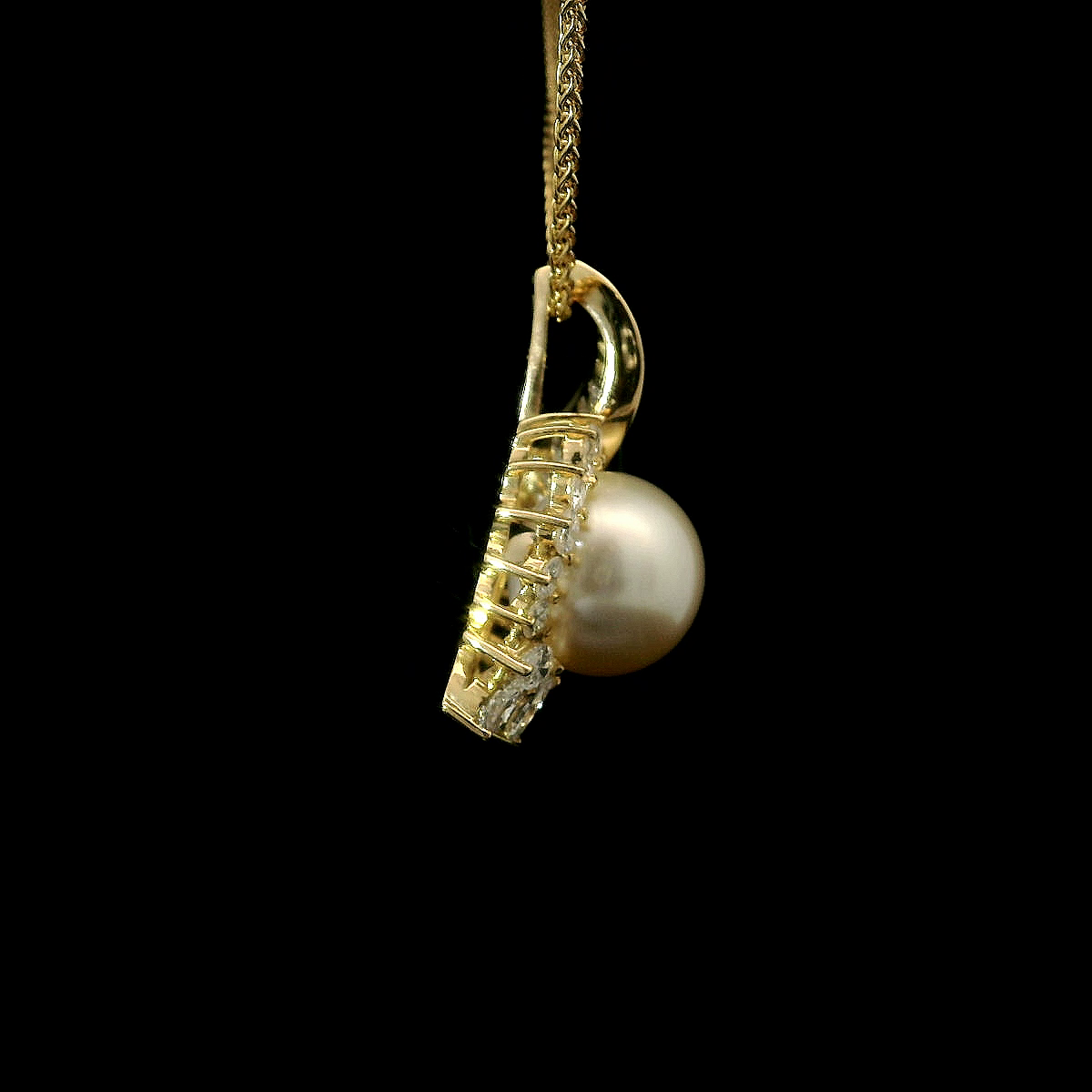 18ct Gold South Sea Pearl and Diamond Oyster pendant chain