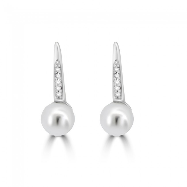 Silky, soft tones and diamond brilliance radiate from these elegant pearl earrings. A hook, crafted in 14ct white gold and tapering with inset pave diamond culminates with a round, cultured white pearl.