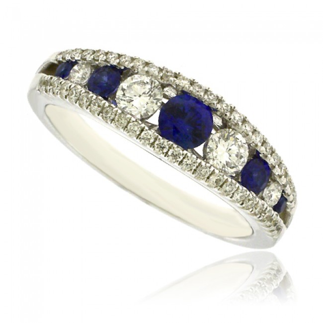 Offering impressive impact, yet elegant this channelled eternity alternates five sapphires and four diamonds in a graduated setting. Two outer rows of micro claw set diamonds complement the feature.