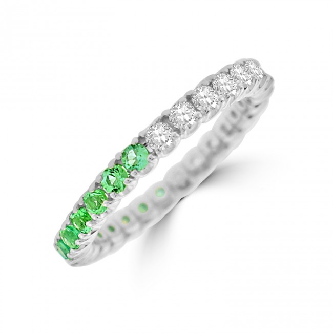 • 18ct White Gold Emerald and Diamond Full Hoop Eternity Ring