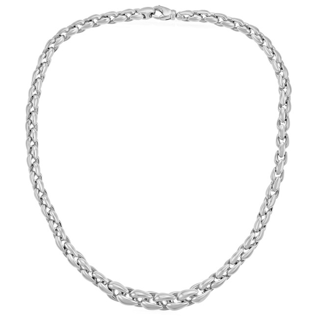 Sterling Silver is coated in Rhodium to create a bright white, tarnish free finish. The oblong links are graduated to towards a thicker centre.