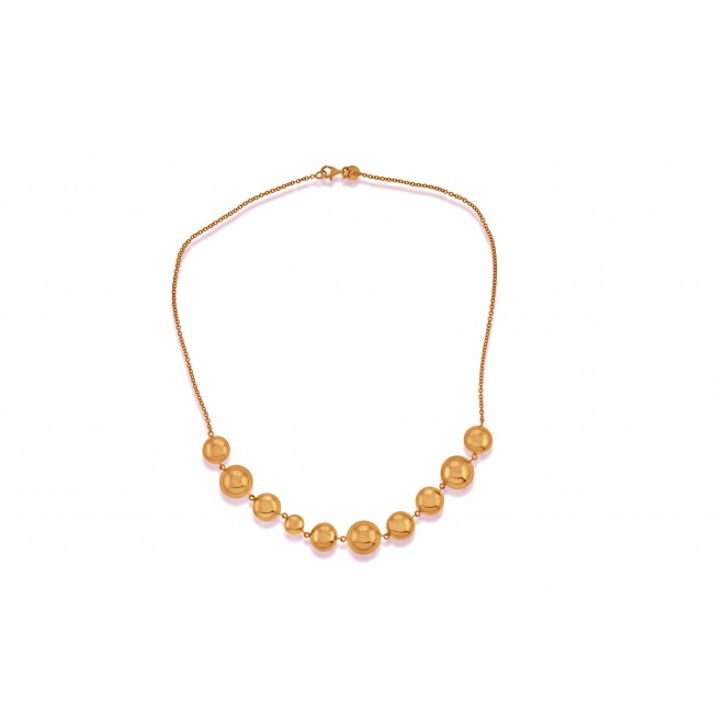 This beautifully made necklet features ten rounded beads of various sizes, yet maintaining symmetry within the 18" necklet. All made with the warm, red and luxurious tones of solid rose gold.
