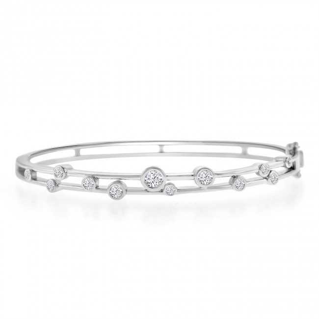 Two wires of rubover and scatter set Cubic Zirconias in a popular "Bubble" style design. Made in Sterling silver with white Rhodium finish.