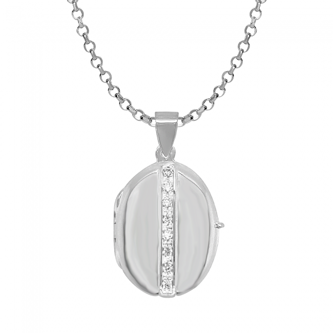 • Sterling silver Oval Stone set Line Locket pendant chain