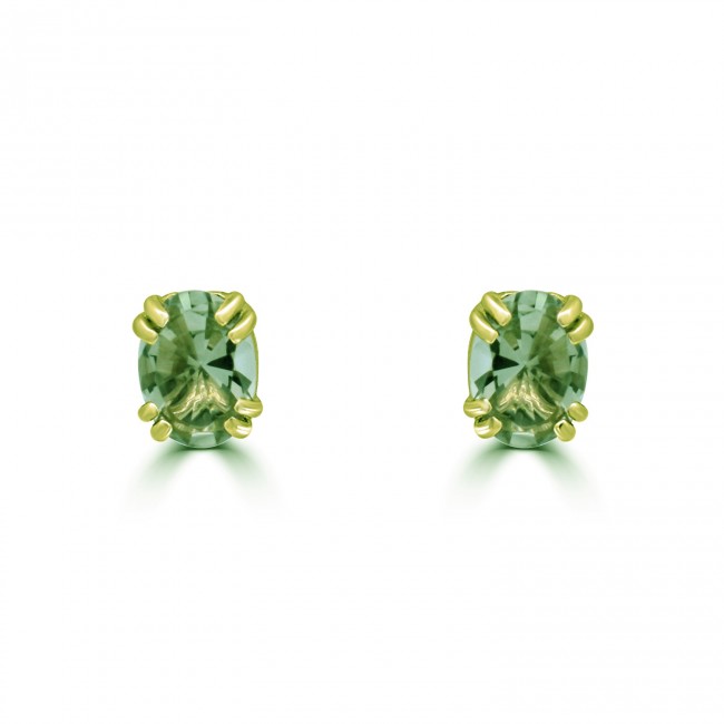 9ct Gold Green Amethyst Oval stud earrings