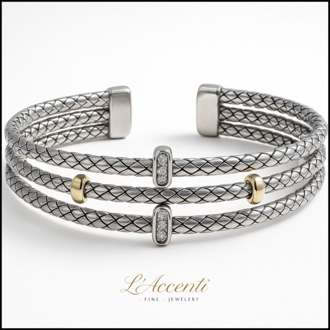 • Sterling silver 18ct Gold Triple Strand Diamond Cuff Bangle