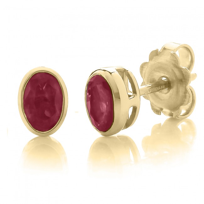 • 9ct Gold Oval Ruby Rubover Stud earrings